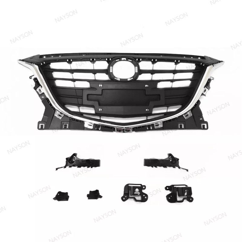 NAYSON 7PC For AXELA MAZDA 3 2014 2015 2016 Front Grille w/Chrome Trim +Bumper Brackets