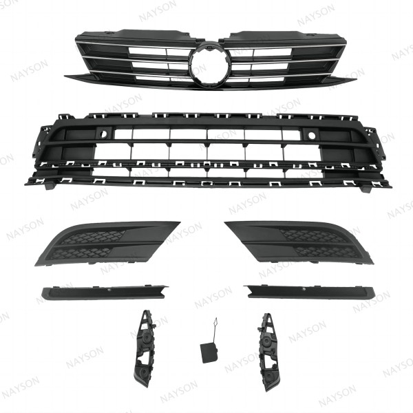 NAYSON 9PC For Jetta 2015-2018 Front Upper Lower Chrome Grille Mesh Bumper Brackets