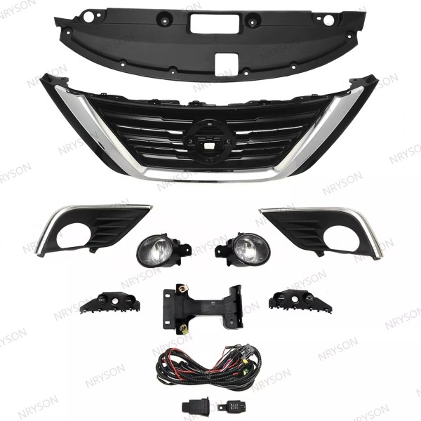 NAYSON For ALTIMA 2016-2018 Front Upper Grille + Bumper Fog Light Kit + Radiator Cover