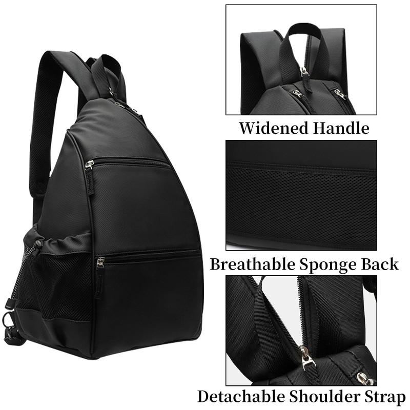 - Adjustable Strap: Pickleball sling bag is designed padded shoulder strap, flips seamlessly between your left and right sides, making it comfortable for both shoulders. You can wear this bag as a sling backpack, crossbody bag, or carry it by the top handle