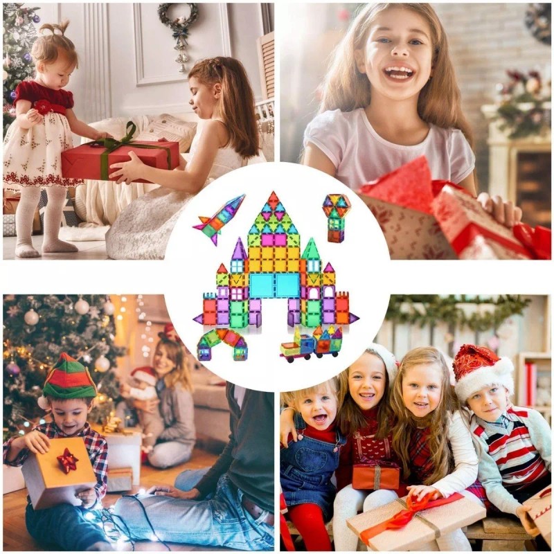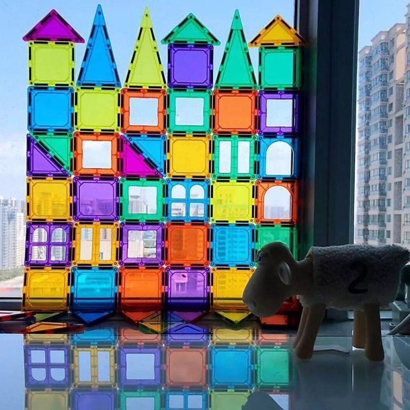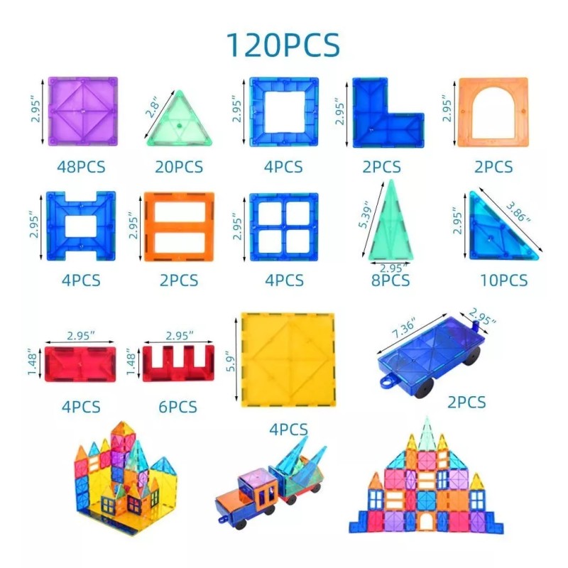 MATERIA: Plástico ABS con imanes fuertes, material apto para uso alimentario. Alta transparencia. Los bloques magnéticos están sellados con remaches para evitar que las baldosas se rompan o se traguen (las otras marcas no tienen remaches, si los bloques magnéticos se rompen, habría peligro de asfixia para los niños), mientras que la salud de los niños es nuestra prioridad. Para tener en cuenta, nuestros bloques de construcción magnéticos son seguros para su niño/niña.