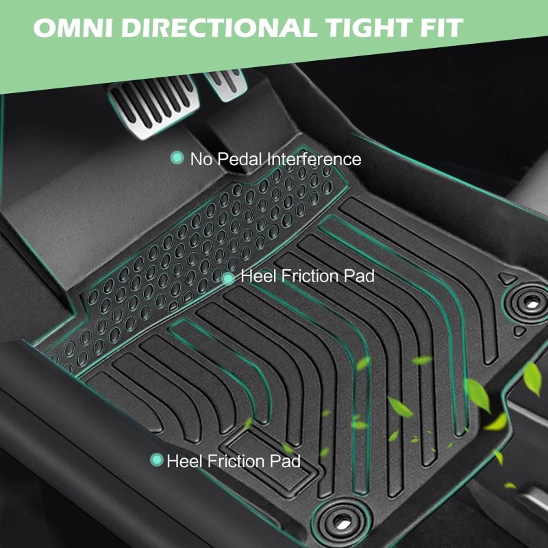 2. Perfect Fit&No Slipping: The mats are tailored to fit your vehicle's exact dimensions. You can be sure that they will fit like a skin and provide maximum coverage. The 3D extended border makes you feel that the floor mat integrates the car during use.