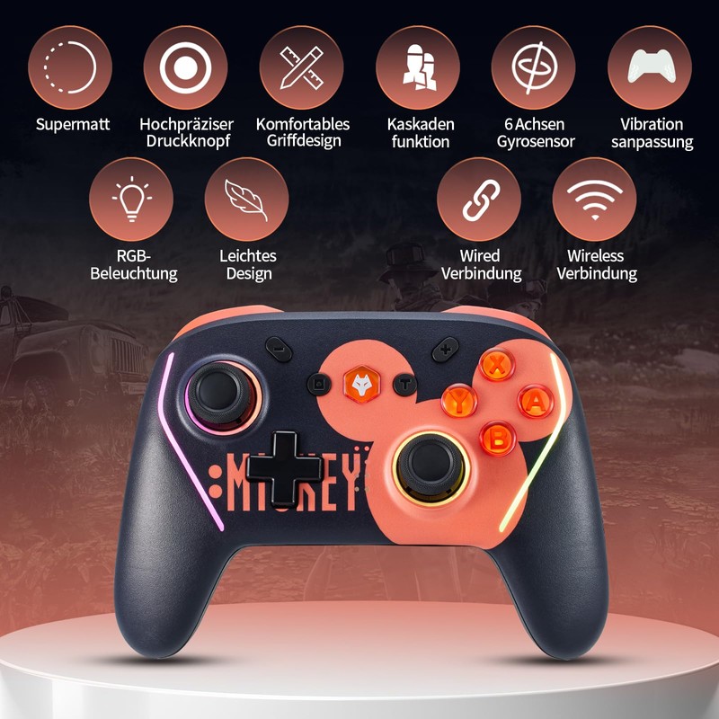 Wireless connection: Bluetooth connection provides a comfortable wireless gaming experience. Free from annoying cables, you can move freely.