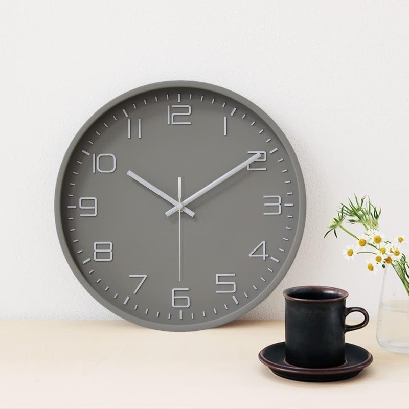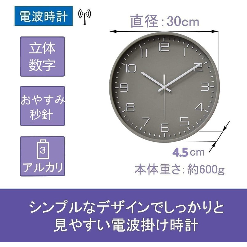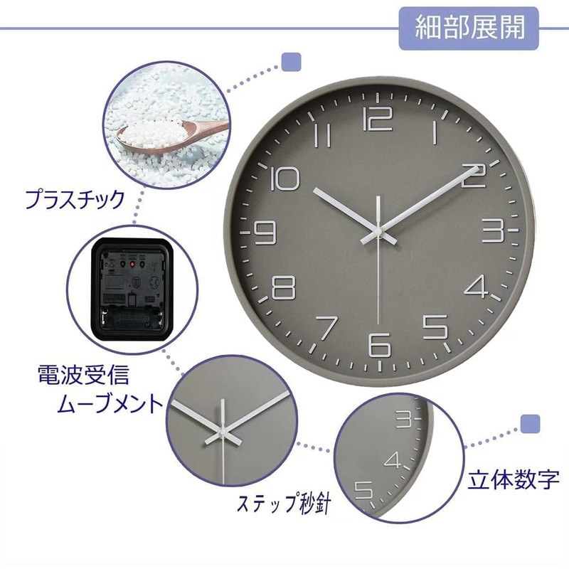Nbdeal NEW-4879 Wall Clock, Radio Clock, Scandinavian 3D Letters, Stylish, Wall Clock, Diameter 11.8 inches (30 cm), Gray