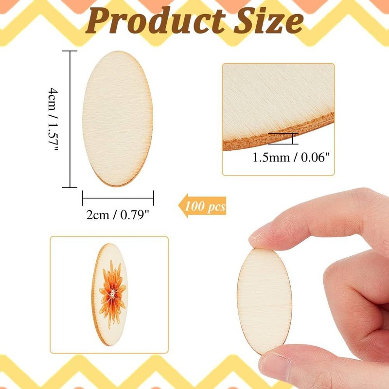 - Size Detail -- You will receive 100 pcs oval wooden pieces, the size is about 0.8 inch(2cm) wide, 1.6 inch(4cm) long, 0.06 inch(0.15cm)thick. Abundant in quantity, enough to choose and replace, easy to meet your daily DIY needs.