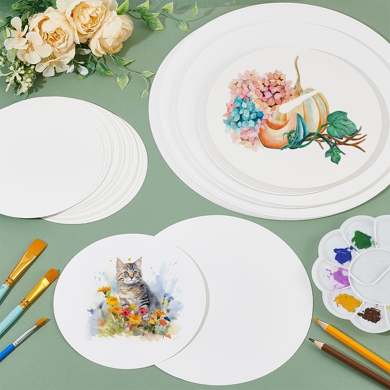 - 4 sizes: 15/19/25/29 cm (6/7.5/10/11 inches) in diameter, are compatible with pencils, inks, colored pencils and more; Watercolor papers can be given to people who like acrylic, watercolors, sketches, etc