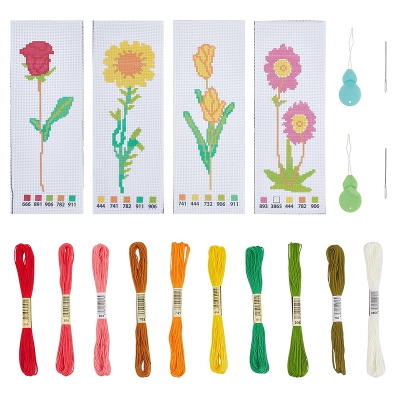 • 4 Sets Cross-Stitch Kit -- You will receive 4 sets flower cross-stitch Aida fabric, 5 colors of cross-stitch thread, 4 needles and 4 threader. The complete kit is enough for you to complete 4 different cross stitch bookmarks