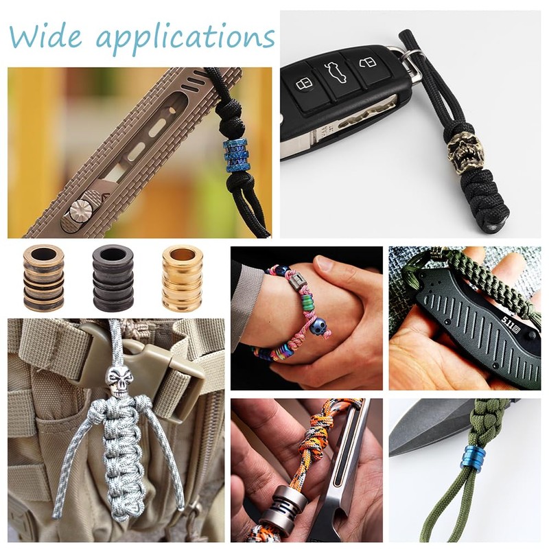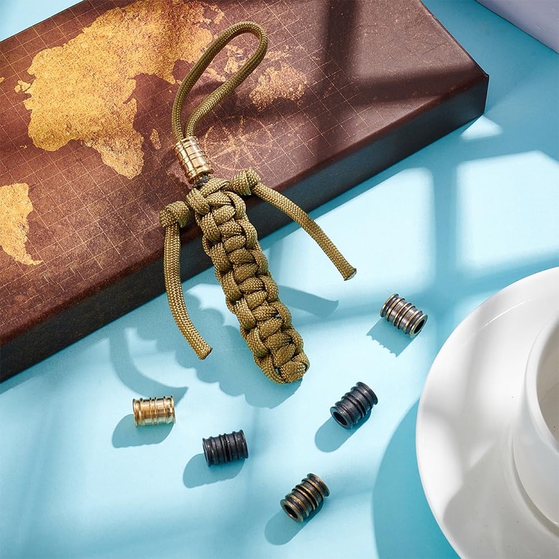 NBEADS 6 Pcs Lanyard Beads Paracord Bracelet Beads, Groove Column European Brass Beads Metal Loose Spacer Beads for Jewelry EDC String Pendant Parachute String Tool