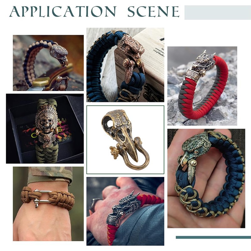 nbeads Bird Skull Brass Bead, Lanyard Spacer Beads, EDC Charms Pendant, Parachute Cord Tool Charms Accessories for EDC String Bracelet Crafts, Antique Bronze