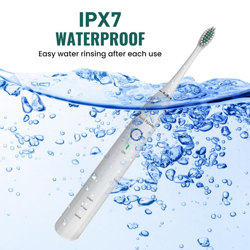 • Ideal for Use in the Shower or Bath: Our IPX7 waterproof electric tooth brush allows you to take your dental care routine with you into the shower or bath. It's an ideal travel toothbrush for people on-the-go who need to save time in their routine. It's also an electronic toothbrush that can be recharged easily.