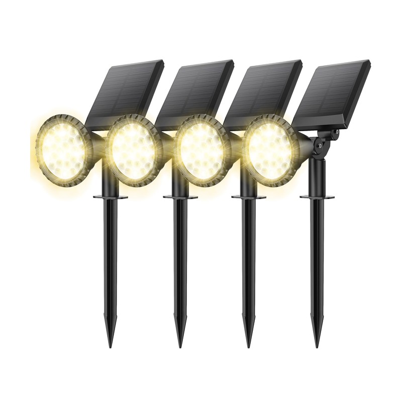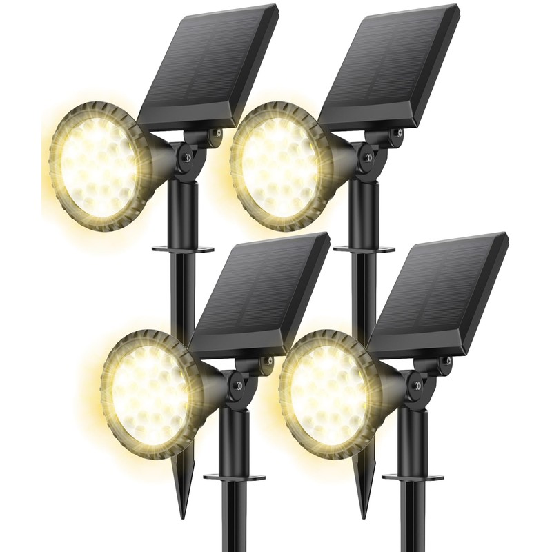 - 4 Pack Solar Spotlight for Outdoor : The new outdoor solar lights for yard is equipped with 27 LED beads that provide 650 lumens of illumination. The dense LED design gives the solar light a more concentrated beam and a longer illumination distance that will illuminate your entire backyard all night long! Make you fully appreciate the effect of lighting up your yard, pool or even garden landscape at night