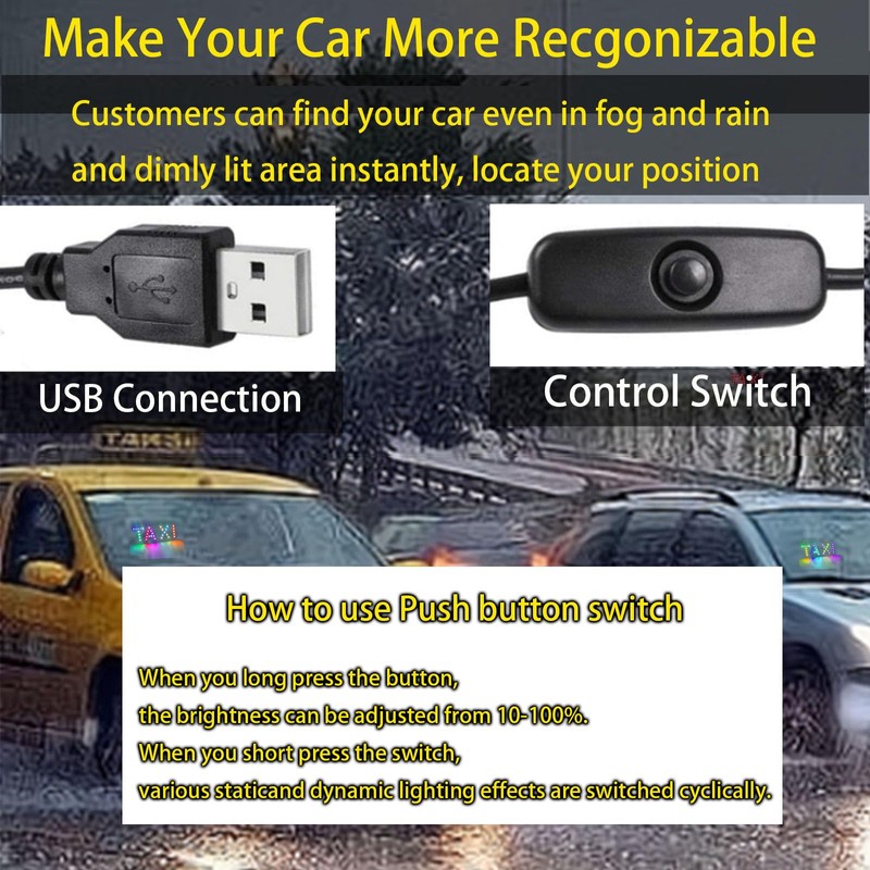 - 【High-Visibility Taxi Identifier】 Ultra-bright RGB LED ensures instant recognition in rain, fog, or nighttime conditions, helping passengers spot your vehicle effortlessly.