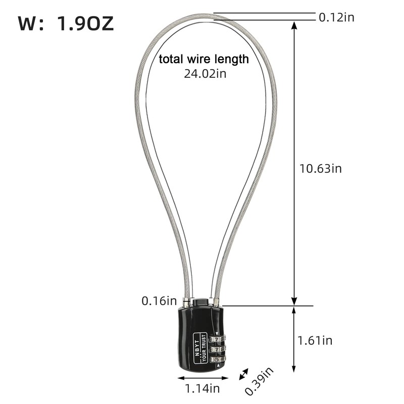 NBYT Wire Combination Lock Padlock, Wire Diameter 3/24", 24" Circumference, Suitable for Travel Luggage, Backpack, Cycling Helmet, Small Cabinet, Gym Cabinet, Suitcase
