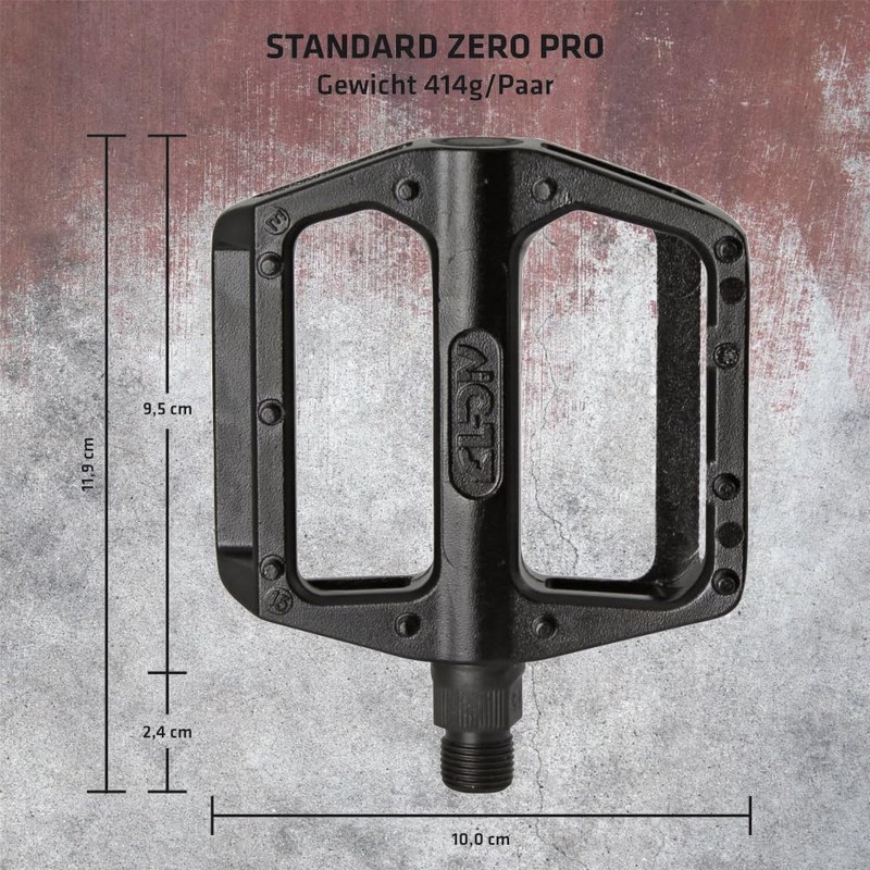 - 414 g per pair of pedals. Pedal body made of sturdy aluminium with pins and cone bearings. Pedal thread 9/16 inch complies with the standard