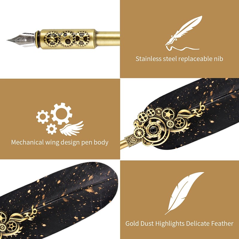 - 【RECOVER THE JOY OF WRITING】 Get rid of monotonous typing and texting and find the joy of writing art with our uniquely designed NC feather pen. The intricate design of this vintage engraved feather pen will bring back the joy of writing and inspire you to create.