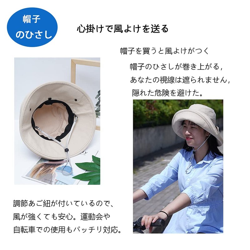 NC Women's UV Cut Ribbon Hat, Large Size, Spring & Summer, Sun Hat, Wide Brim, Small Face Effect, Velcro Adjustment, Chin Strap, Won't Fly Away from the Wind, Foldable, Portable, Outdoors, Bicycle, Spring and Summer, Khaki