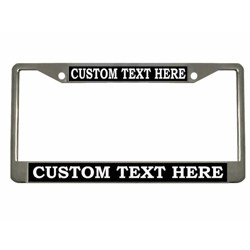 Get everyone's attention with this cool chrome plated license plate frame made of sturdy heavy metal and personalized with weather/car wash resistant vinyl that is waterproof/UV protected. It won't fade and will last for many many years. It is also a great gift item. It weighs about 9oz and measures 12" x 6" the frame is brand new and it's well packaged. The distance between two holes is about 7 inches. The frame fits all standard USA and Canada 12x6 license plates and can be used for the front or the back of a car.