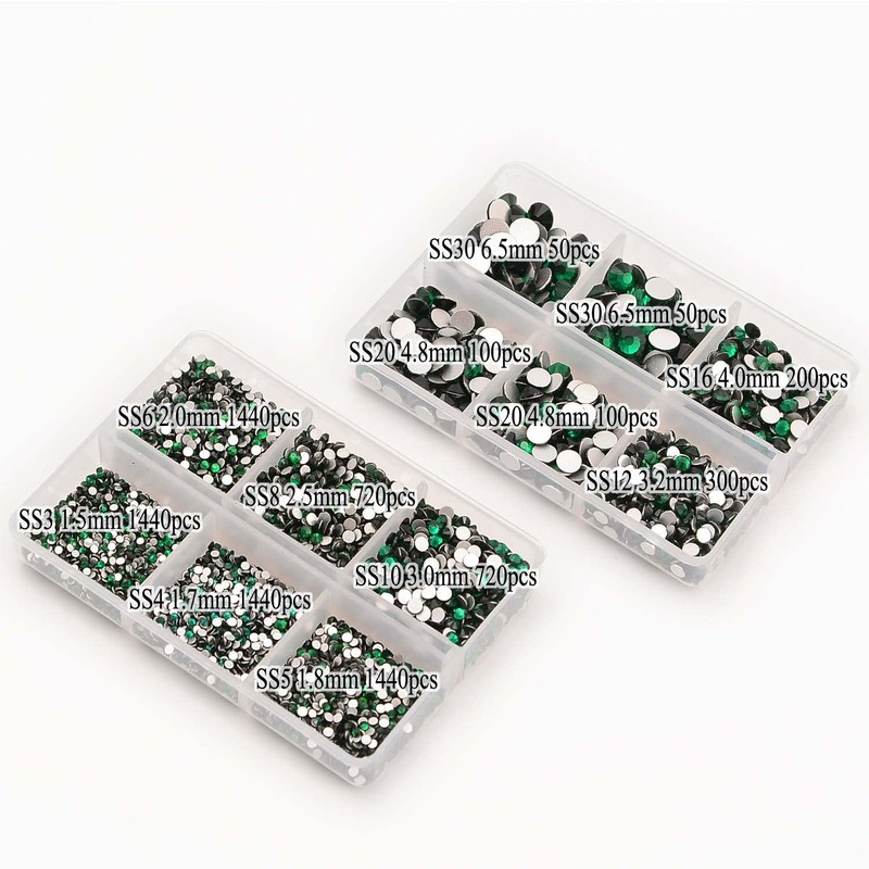 - Sizes & Quantities - 8000 Pieces Varies Sizes Tiny Rhinestones in 2 boxes, 10 sizes: (BOX 1: ss3 1440pcs for one Grid, ss4 1440pcs for one Grid, ss5 1440pcs for one Grid, ss6 1440pcs for one Grid, ss8 720pcs for one Grid, ss10 720pcs for one Grid.︱BOX 2: ss12 300pcs for one Grid, ss16 200pcss for one Grid, ss20 200pcs in total in two Grids,ss30 100pcs in total in two Grids) Enough Quantity To Decorate Various Items, Adds Sparkle And Glamour To Your Things