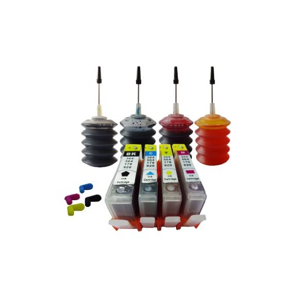ND Brand Dinsink: 4 Pack US Patent HP 920 Refillable ink Cartridges with Chips + 4x30ml Premium refill ink kit for HP Officejet 6000 6500 6500a 7000 7500a . The item with ND Logo!