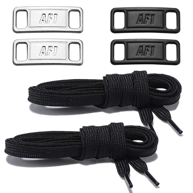 - 【What You Get】:The package contains 4pcs laces metal tag (2pcs silver+2pcs black) , 2pairs flat black shoe laces (4pcs laces, 5/16" thick, 27" length) and an installation manual.The metal laces tag 1.14" length and 2/5" width.