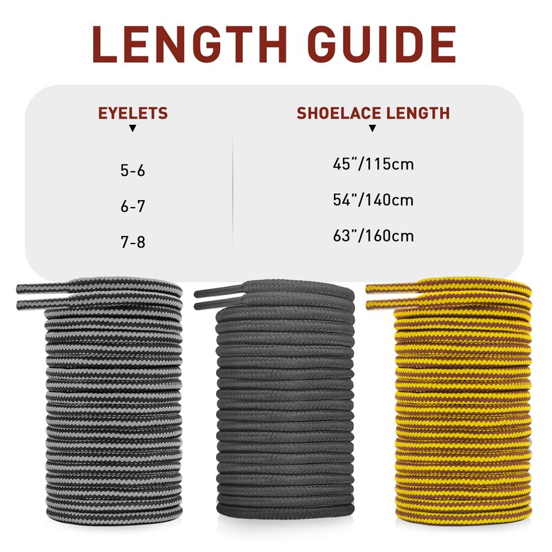 - 【Versatile Fit】:Our 3/16" (4.5mm) diameter round laces are suitable for a wide variety of boots, including military boot, Martin boots, tooling boots and tactical army combat boots. Recommend these to anyone wanting stronger, more durable thick boot laces.