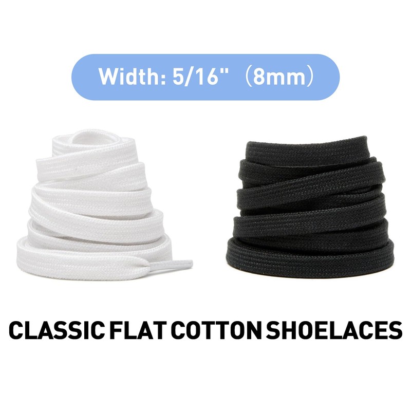 - STRONG FASTEN : The flat cotton shoestrings for sneakers stay tied tightly, you don't worry about them coming untied during activities. They can perfectly pass through the shoe holes and remain strong fastened.