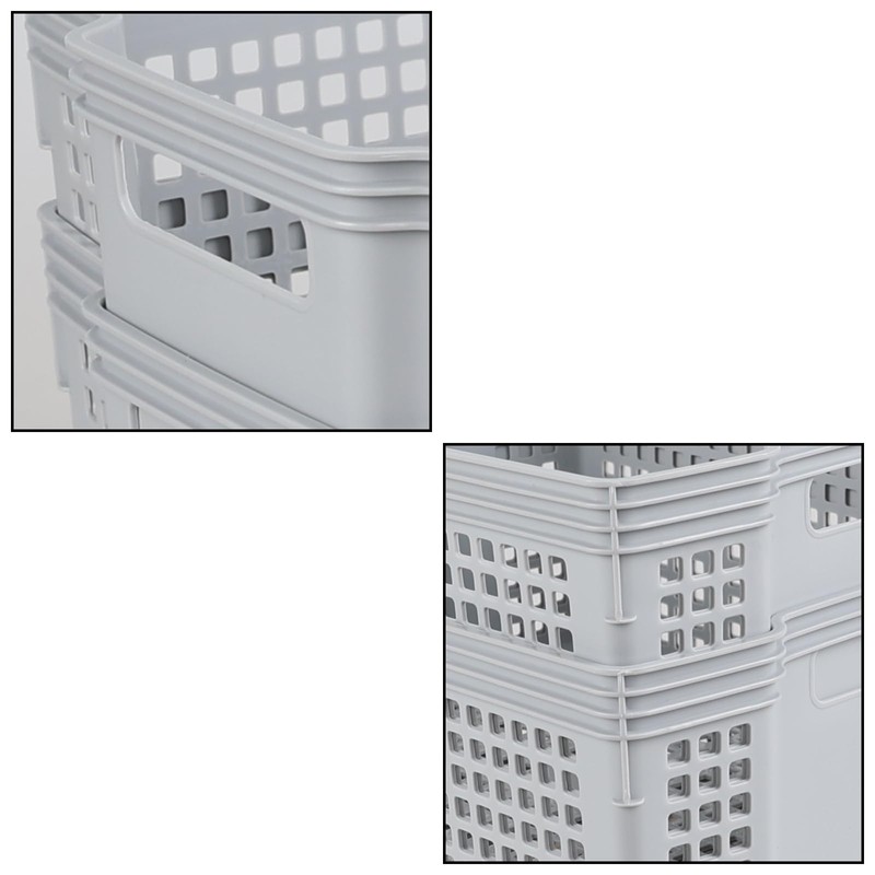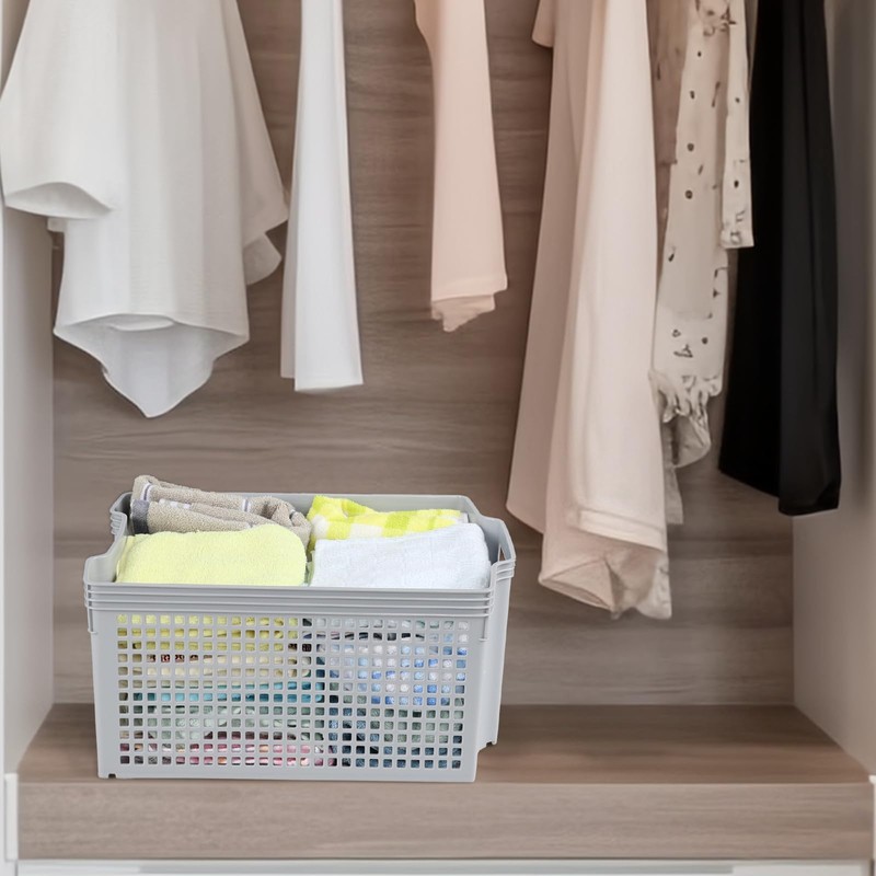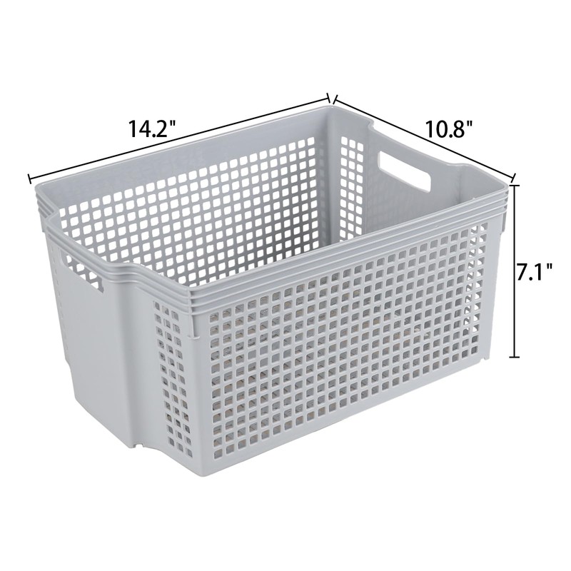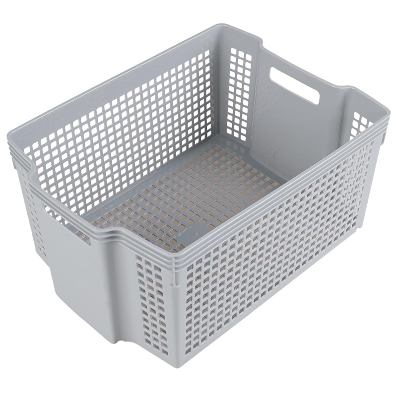 Neadas 6 Packs Large Plastic Storage Stacking Baskets, Large Stackable Cupboard Baskets, Grey