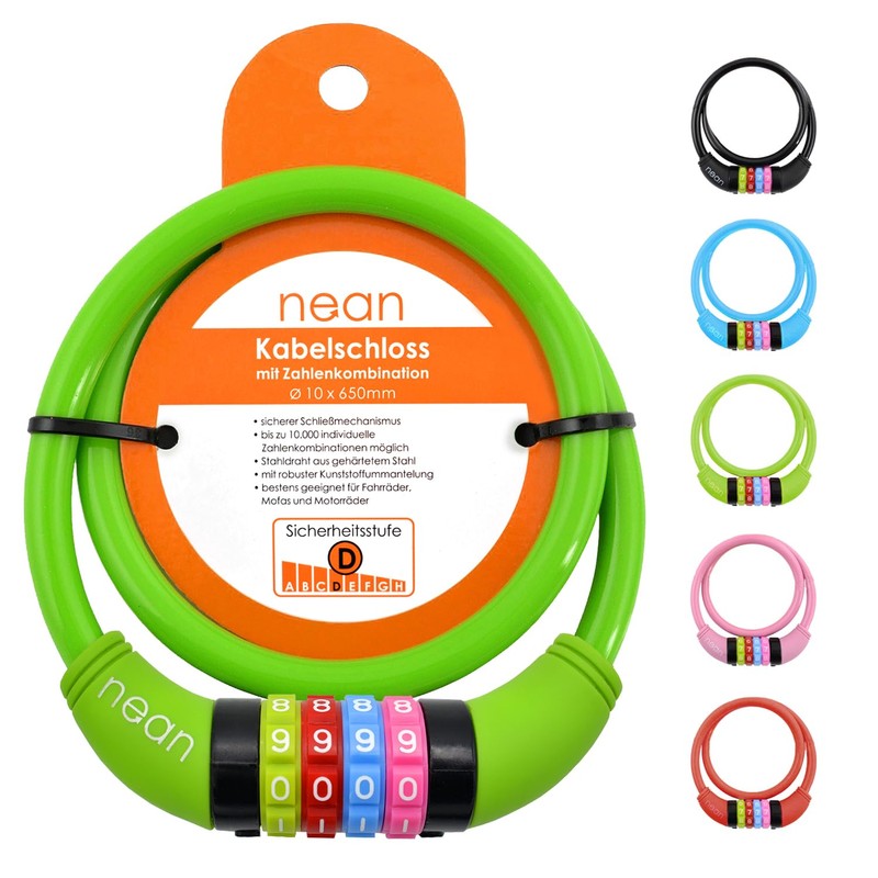 Nean children's-bicycle-cable-lock, number code combination lock in colourful design, 10 x 650 mm, 65cm
