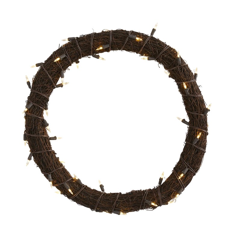 Nearly Natural 20in. Vine Artificial Wreath with 50 White Warm LED Lights