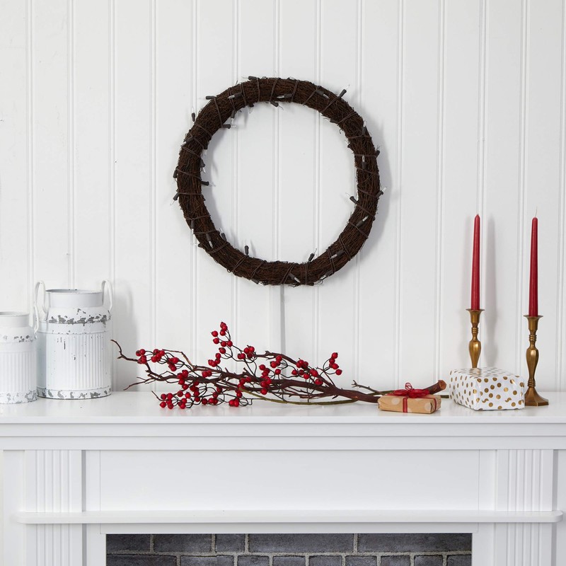 - SEASONAL DÉCOR ACCENT: Add decorative accenting to empty walls or doorways with this artificial vine wreath, designed with a twig-like base. Great for year-round display, this vine wreath makes for an inviting accent wherever displayed