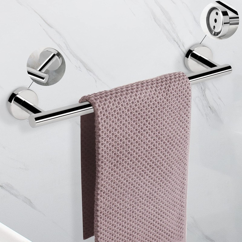 - WIDELY USED: 16 inch towel rack can hang large towels and bath towels, and toilet paper holder with stainless steel knob at the bar end can easy to hold the roll paper prevents it from falling off. The multifunctional hooks can make your home tidy and clean and used anywhere such as the bathroom, kitchen, living room, etc.