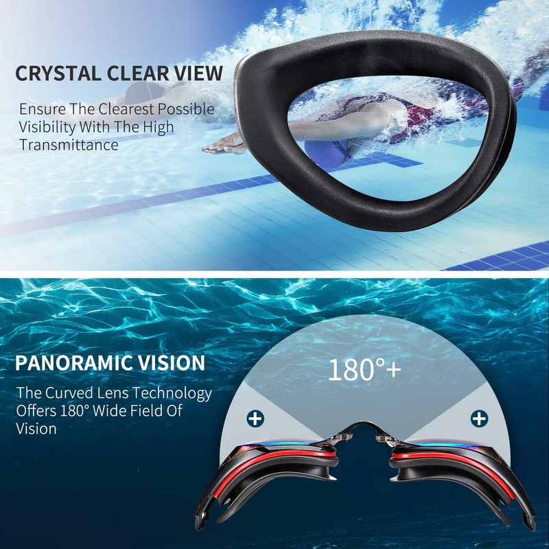 - 🏊♀️ Crystal Clear Wide Underwater: UV protection and anti-fog treatments on lens provides clear view without sunlight reflection under the pool and outdoor swimming.