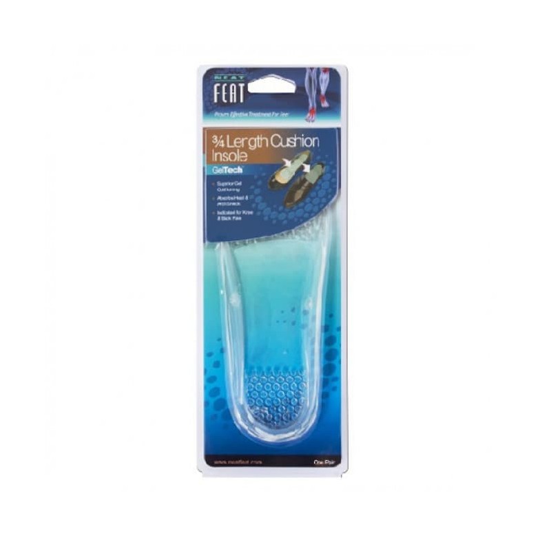 - Neat Feat ¾ length gel insole provides effective support and shock absorption to the heel and arch of the foot