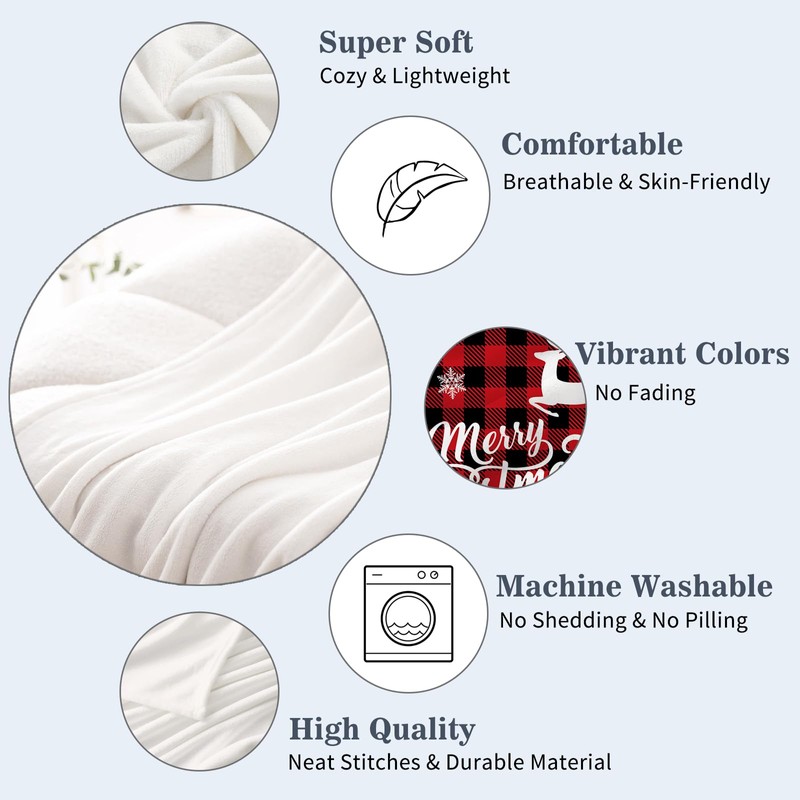 - ★EASY TO CLEAN & CARE★ : The cute Christmas decorative blanket is Machine Washable .Tumble dry with low temperaturet,do not bleach.No shrinkage, No color fading, and No shedding after washing.The cozy Christmas blanket is super soft,durable and easy to maintain.