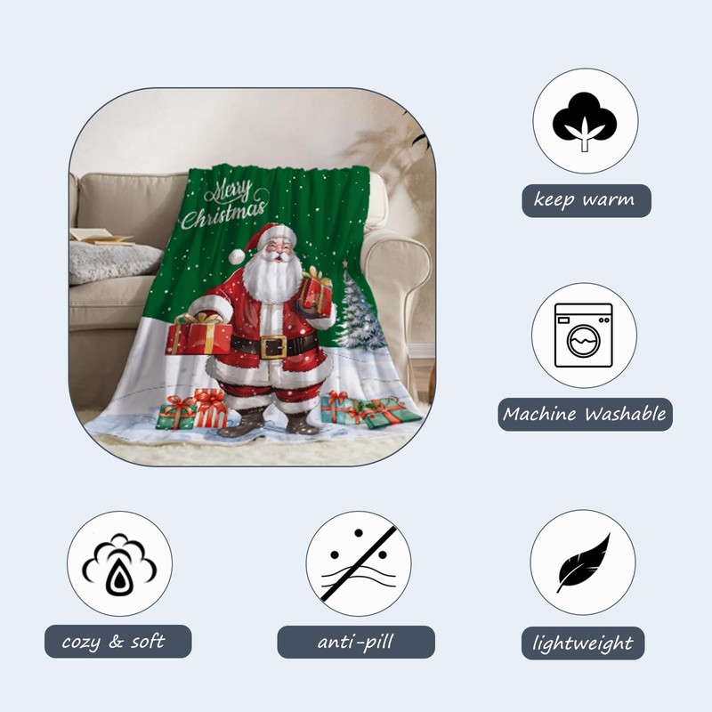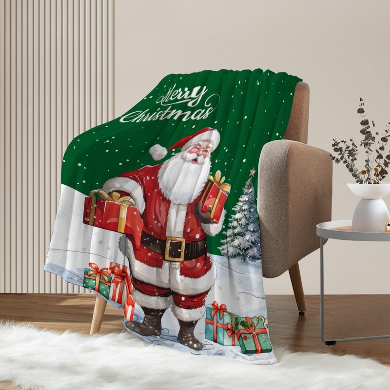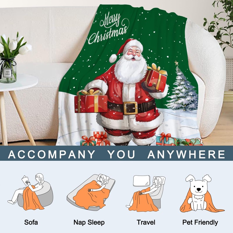 - ★ CHRISTMAS DECOR GIFT★ : The green Christmas Santa Claus blanket is your perfect holiday gift choice, very suitable for family,women, men, girls,boys, dogs and pets, etc.The plush Christmas blankets are not only warm blankets for couch,sofa,bed and car, but also bring a stylish and unique holiday atmosphere to your bedroom and living room.The Xmas Holiday throw blanket is with cute Santa Claus Snowflake pattern, which is a perfect addition to your holiday home decorations.