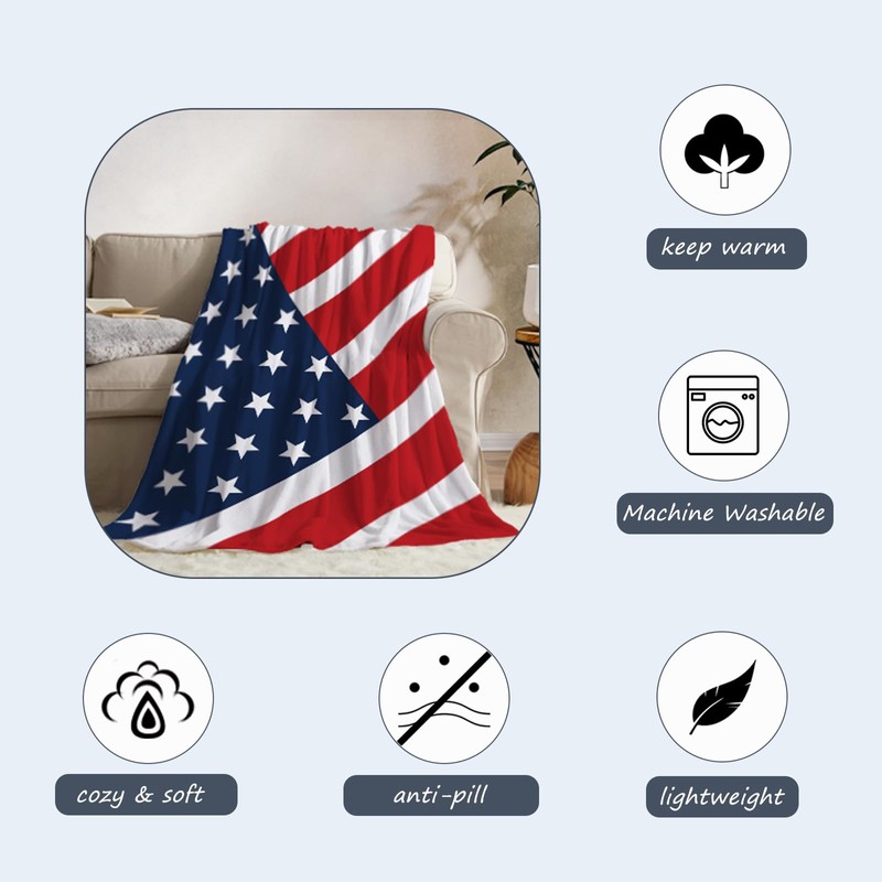 Material:The 4th of July throw blankets are made of high-quality flannel, which is an ultra soft and lightweight fabric,giving you a comfortable feeling at any time.