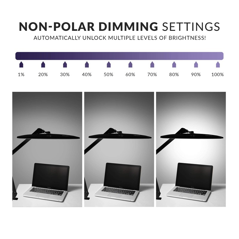 - SET YOUR OWN BRIGHTNESS LEVELS - Automatically unlock multiple levels of brightness! Its Nonpolar dimming feature offers multiple lighting levels. Increase the lamps versatility and functionality! You may prefer a darker lighting now but still want the full brightness for your tasks later. The easy-to-use dimmer switch allows you to effortlessly adjust the brightness levels to achieve the perfect lighting.