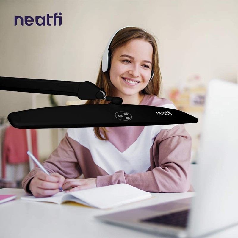 Neatfi Elite HD XL Task Lamp with Clamp, 22.8" Wide, 1360 Lumens, 84PCS SMD LED, 6000-7000K, Super Bright Desk Lamp, Nonpolar Dimming, Multiple Brightness Levels, Ergonomic Design (Black)
