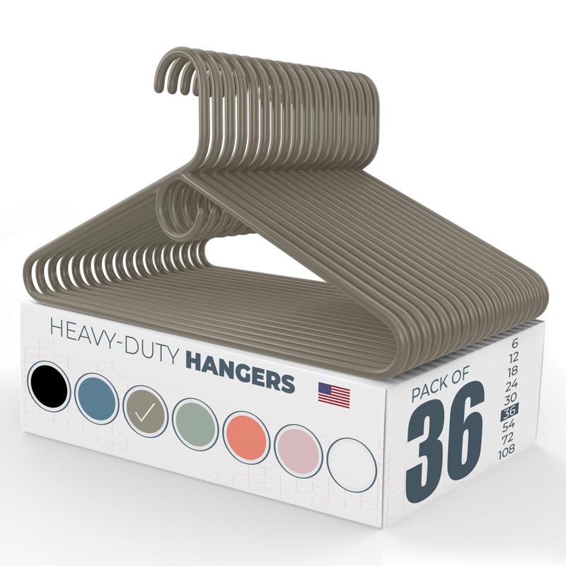 - HEAVY-DUTY CLOSET HANGERS - A plastic hangers bulk set proudly made and packaged in the USA. Try out a coat hangers 36 pack or choose from multiple pack sizes and colors guaranteed to perfectly fit any closet!