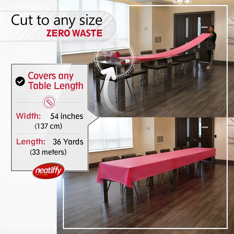 Neatiffy Disposable Plastic Table Cloth Roll | 54 in x 108 Ft Waterproof Tablecloth | Table Cover for Rectangle, Square, Round Oval Tables | Picnic, Party, Banquet, Birthdays, Weddings - Pink