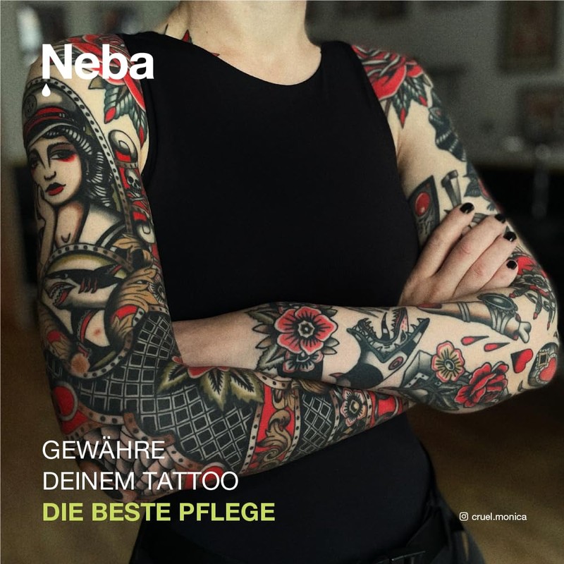 - PROPER SKIN CARE AFTER TATTOWING Fresh tattoos need the right care and hydration to keep their colors and shape. The Neba tattoo cream ensures that your healed skin is properly cared for after tattooing.