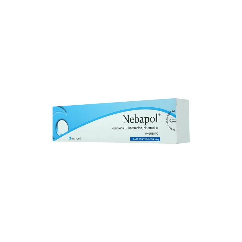 Nebapol es un ungüento tópico formulado con tres antibióticos de amplio espectro: neomicina (0.350 g por 100 g), polimixina B (500 000 U) y bacitracina de zinc (40 000 U), en excipiente hasta 100 g. Esta combinación antimicrobiana actúa eficazmente contra bacterias Gram positivas y negativas, incluyendo Pseudomonas y organismos comunes en infecciones cutáneas