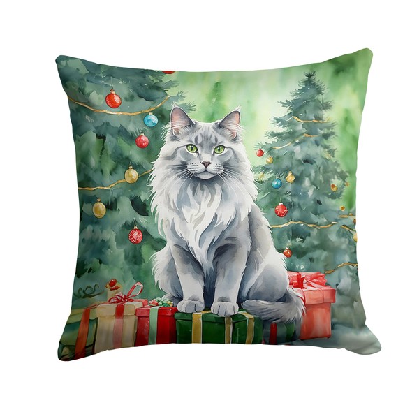 Nebelung Cat By the Christmas Tree Throw Pillow