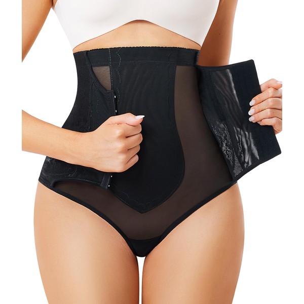 Nebility Thong Shapewear for Women Tummy Control Body Shaper Panties High Waisted Trainer Thigh Slimmer Underwear(Black,Medium)