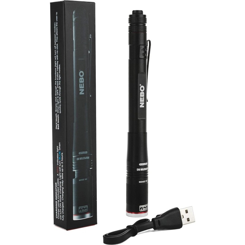 NEBO Rechargeable Pen Light Flashlight 360-Lumens Inspector 1 pack, Black