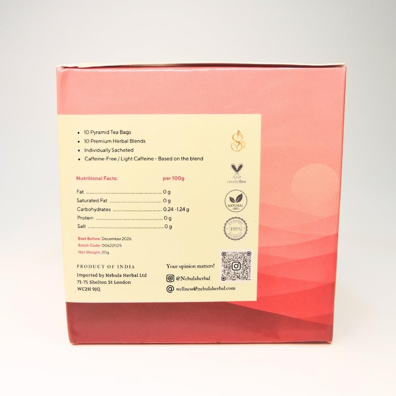 - 📦 Compact & Travel-Friendly – A portable box with 10 individually wrapped teas—perfect for home, office, or gifting on the go.