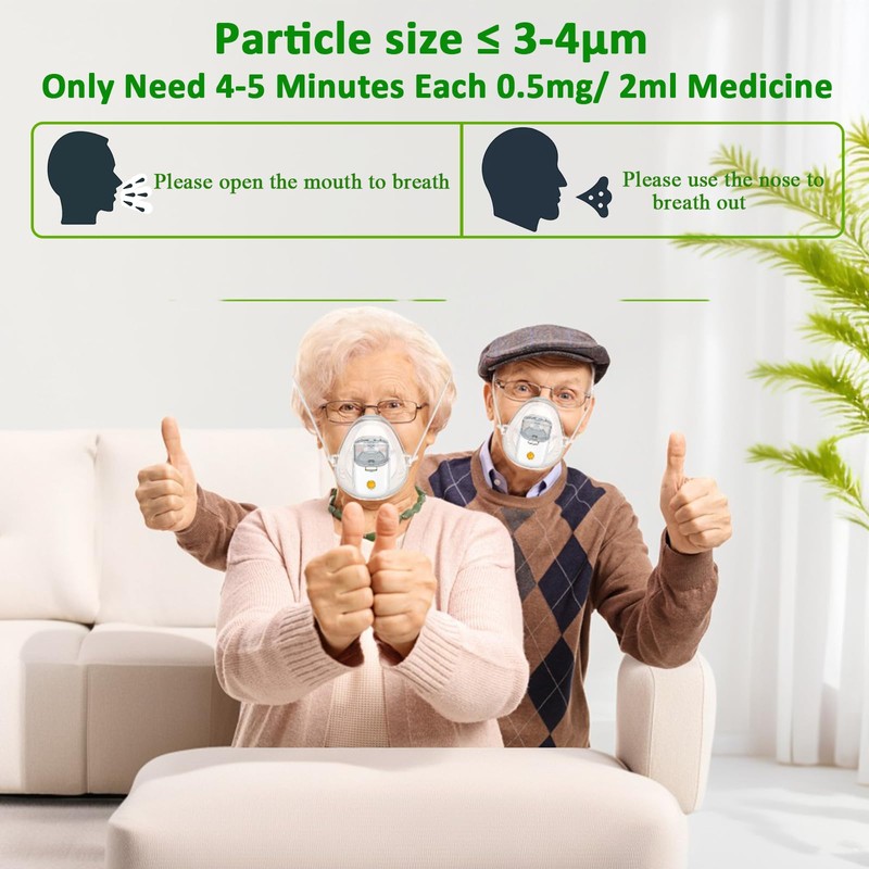 - [On-the-Go Nebulizer] -- Remarkably compact and lightweight, the device is about the size of a postcard, allowing users to wear it for hands-free nebulization or bite the mouthpiece. Because of its diminutive size, children can easily manage the nebulizer with a child mask. Importantly, the unit operates quietly, without causing hand fatigue during use.