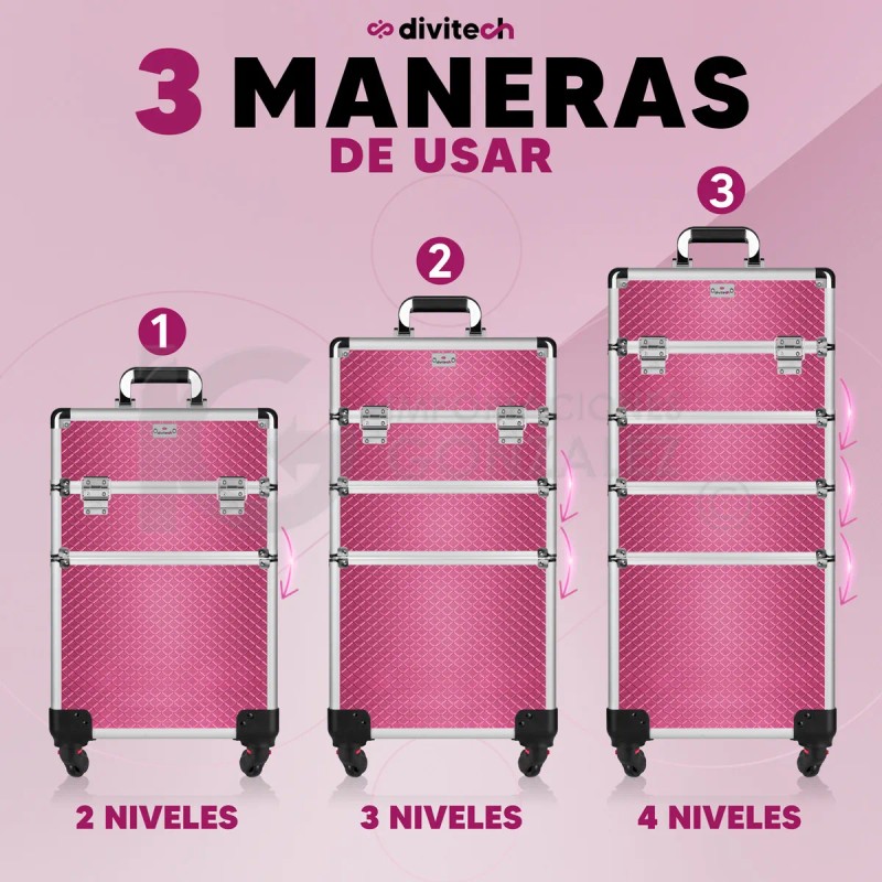 Neceser De 4 Nivel Maletín Cosmetiquera Desmontable Reforzado Con Llantas Profesional Para Maquillaje Divitech®