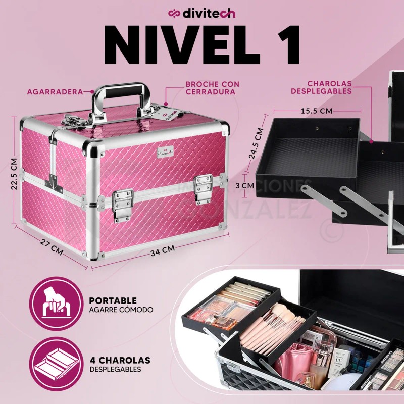 ¡Descubre la calidad y el diseño del Neceser de 4 Niveles ! Este neceser es perfecto para organizar, proteger y transportar tus cosméticos, joyería y otros artículos personales. Fabricado con materiales resistentes y de alta calidad, es la solución ideal para mantener todo en orden y en perfecto estado.