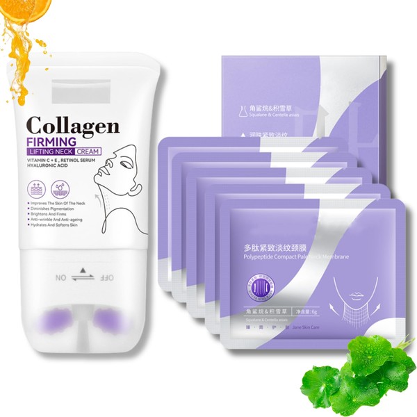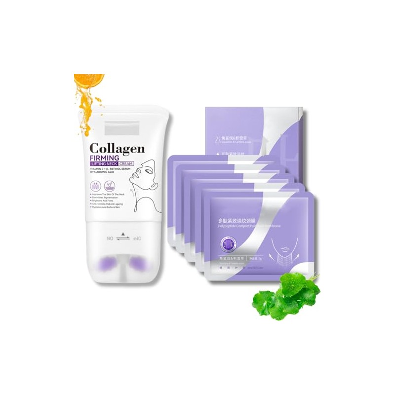 Neck Creams for Firming Roller & Neck Mask Set - Neck Creams for Tightening Skin - Anti Wrinkles Face& Body Moisturizer with Collagen (110ml+5Pcs)